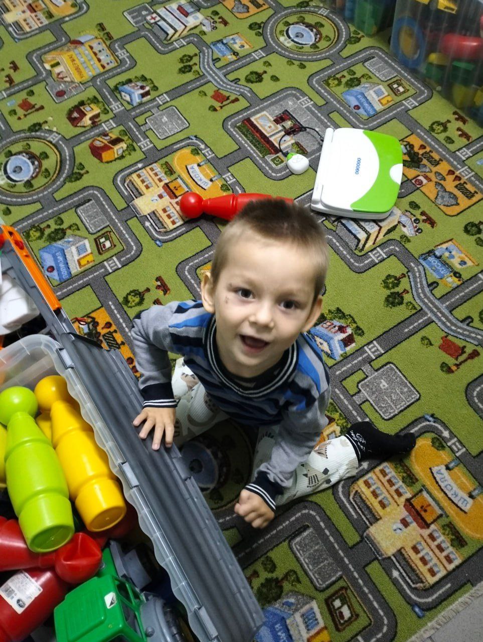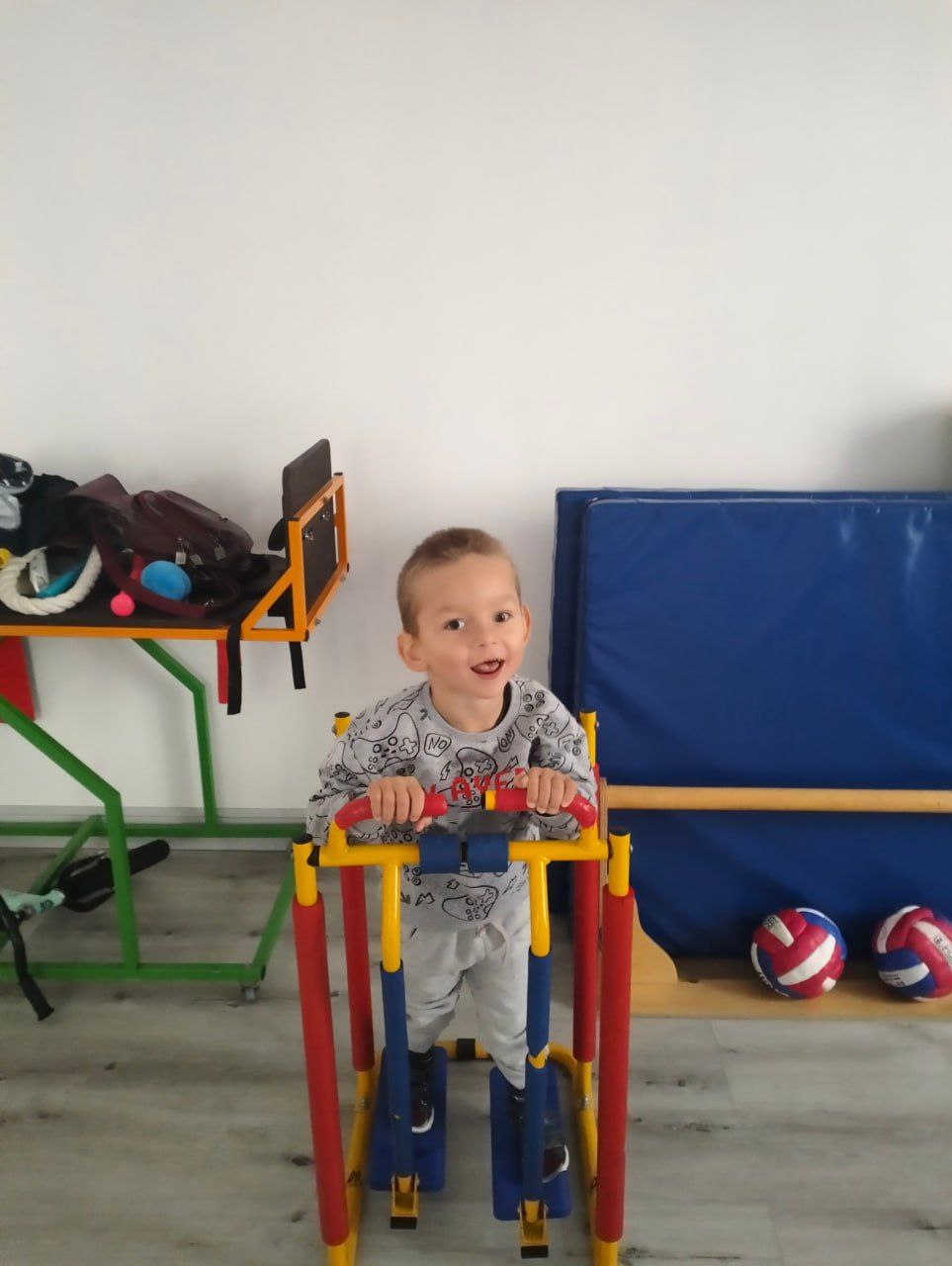 Реабилитации начали в 5 месяцев, раньше не разрешали неврологи. Несколько курсов войта-терапии и бобат-терапии, но они не давали результатов. В 10 месяцев Миша начал заниматься в реабилитационном центре. Тогда появились первые результаты. Миша стал играть с игрушками, держать бутылочку и появились опора на ноги. Потом Миша научился переворачиваться. И ему поставили диагноз ДЦП, спастический