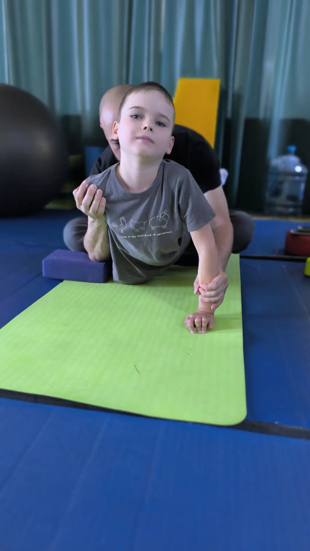Сейчас Даня передвигается самостоятельно, но походка гемипаретическая. Эквино-вальгусная установка левой стопы. Наблюдается костное укорочение левой ноги около 2-х см. Идет искривление позвоночника и задержка речевого развития. Имеются проблемы с выражением своих мыслей, их формулировкой и изложением.